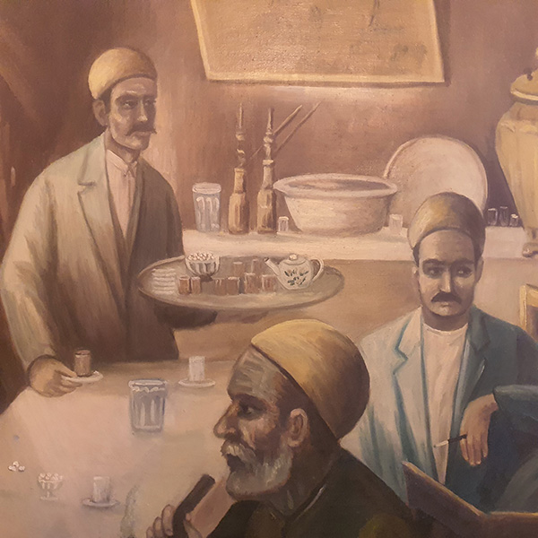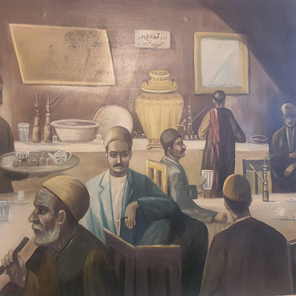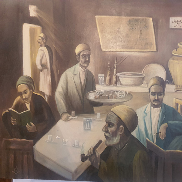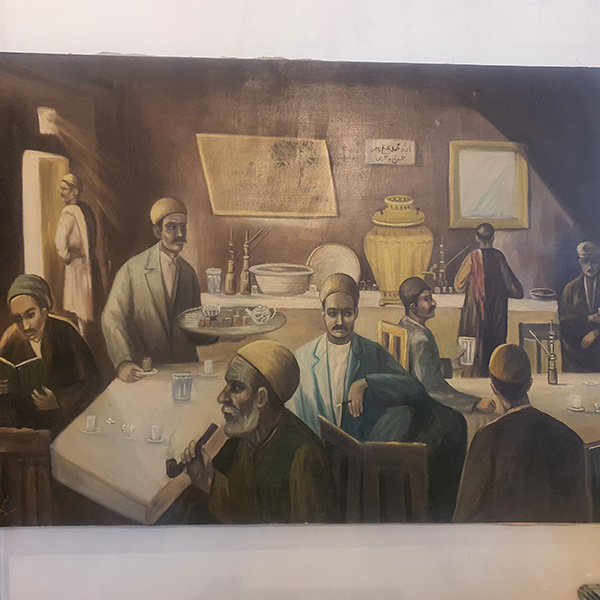 تابلوی قدیمی قهوه خانه به ابعاد 100 در 70 سانتیمتر امضاء دار
