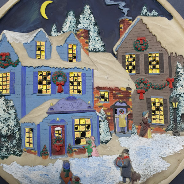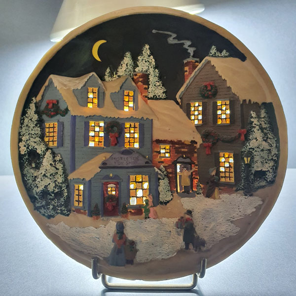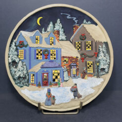 یک عدد بشقاب گرد نقش برجسته با منظره زیبای برفی ، کاربرد رومیزی یا دیوار کوب